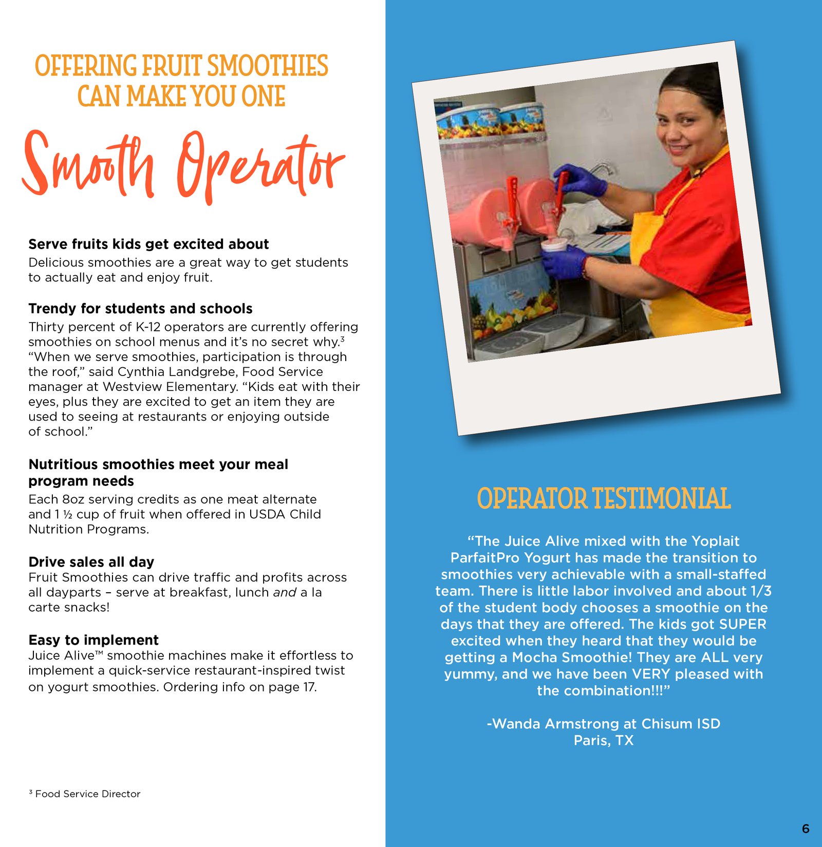 Juice Alive is one of the nation’s leading providers of both 100% juice concentrates and frozen beverage machines. The Juice Alive product was developed in 2004 to meet the growing nutritional demands of the school food service industry. It has emerged as a healthy, profitable option for both child nutrition departments and principals.